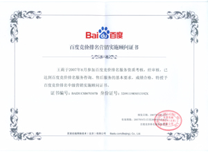 鹽城思科網(wǎng)絡工程有限公司作為百度鹽城地區(qū)總分銷商,在2007年度參加百度競價排名服務資質(zhì)考核中,經(jīng)過公司全體員工們的共同努力,再創(chuàng)佳績,其中通過中級服務認證考核8人,3人優(yōu)秀,通過率達95%,被全球最大中文搜索引擎——百度在線(北京)有限公司再次授權(quán)百度競價排名鹽城地區(qū)唯一客戶服務中心。盡善盡美的售后、全心全意的服務,思科人將用十二分的熱忱等待您的惠顧,共創(chuàng)新紀元!