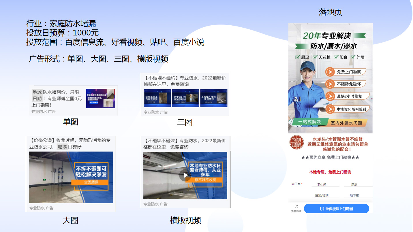 投放范圍:百度信息流、好看視頻、貼吧、百度小說